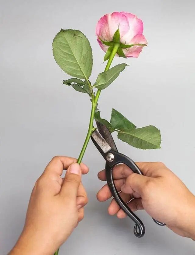 与根部修剪一样,修剪时最好用锋利的剪刀,因为不锋利的剪刀容易让花枝受到二次压迫损伤。